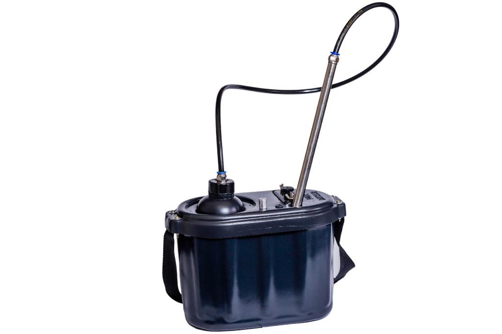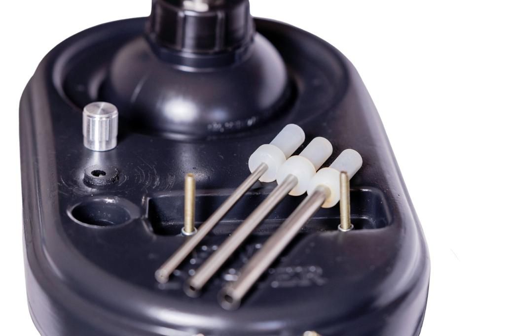 Corpo feito em poliuretano, com haste e agulha em aço inox, alimentação por bateria na voltagem 110 ou 220 volts.